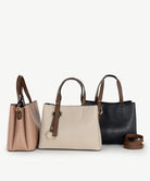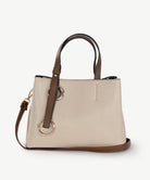 The Cadiz Tote is compact, structured and simply, a beautiful medium sized tote! Made from smooth vegan leather and finished with soft gold hardware, this versatile piece features a grab handle and an adjustable cross body strap. The Cadiz Tote is complete with a unique gold ring detail and a matching eyelet accent on the front panel.