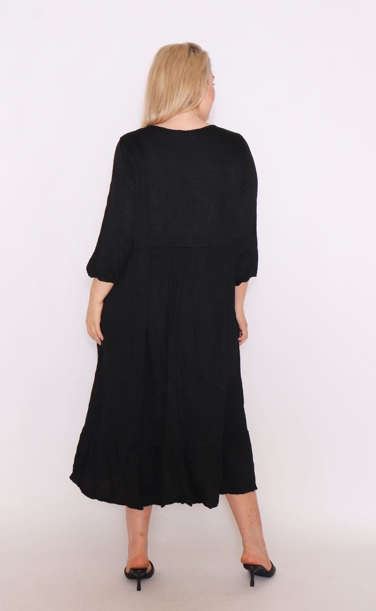 Cotton Waterfall Dress - Black