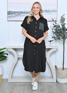 Lee Black Sequin Pocket Linen Dress